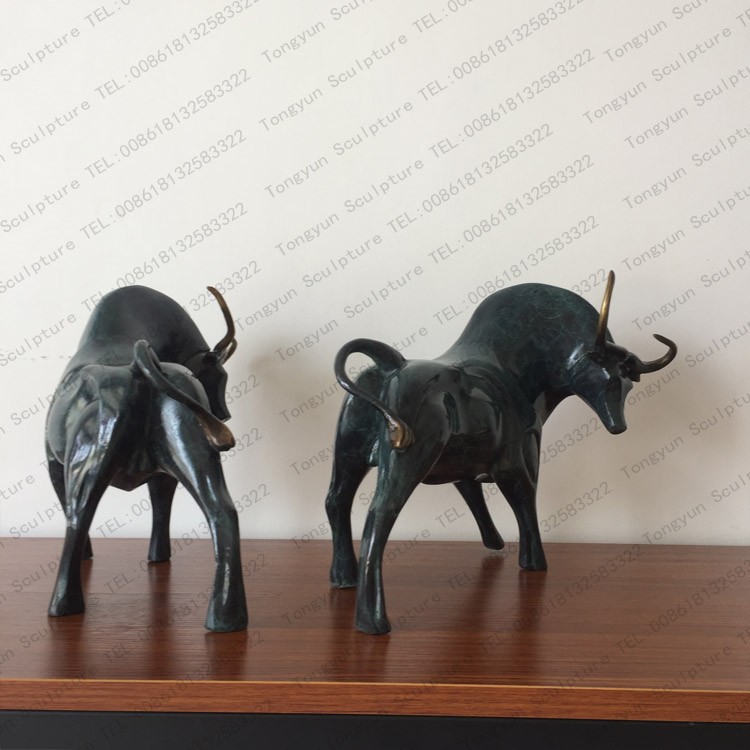 Abstract Small Pair Bronze Bull Sculpture