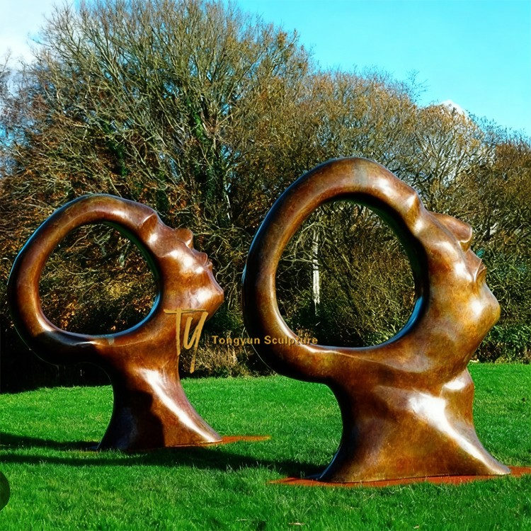 Two Abstract Head Portrait Modern Bronze Sculpture for Outdoor Garden.jpg